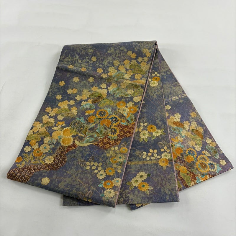 おめでたい席に相応しい意匠の袋帯でございます。 格式高いお席にもお使いいただけますので、お見逃しのないようお願いいたします。 締め跡がございます。 表地所々に金銀彩の剥がれや変色がございます。 リユース品としては良い状態で、まだまだご活用頂けると思われます。 ※なお、厳しく商品の状態確認を行っておりますが、記載の汚れ以外にも見落とし箇所がある可能性がある旨ご了承いただけますと幸いです。 沢山の商品の中からご覧いただき誠にありがとうございます。