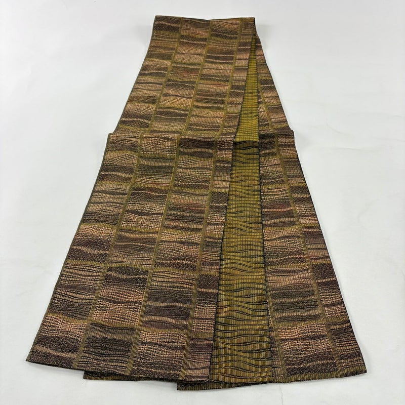 【着物ランク】秀品 【素材】正絹 【帯丈】約444cm 【帯幅】約30.5cm 【帯仕立て】仕立て上がり 【状態ランク】ランクA 【帯着用シーン】普段使いの洒落帯(紬・小紋)