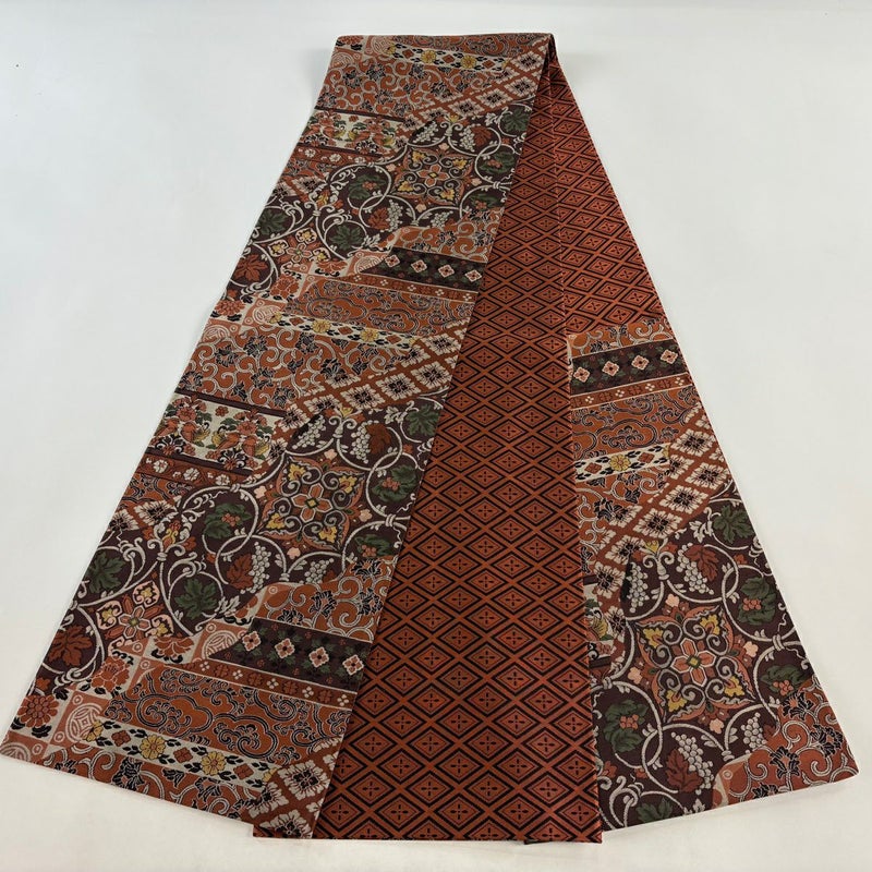 普段使いでお使いいただける袋帯でございます。 カジュアルな装いに合わせてお使いください。 締め跡がございます。 リユース品としては目立った染み傷なく、状態の良いお品でございます。 ※なお、厳しく商品の状態確認を行っておりますが、記載の汚れ以外にも見落とし箇所がある可能性がある旨ご了承いただけますと幸いです。 沢山の商品の中からご覧いただき誠にありがとうございます。