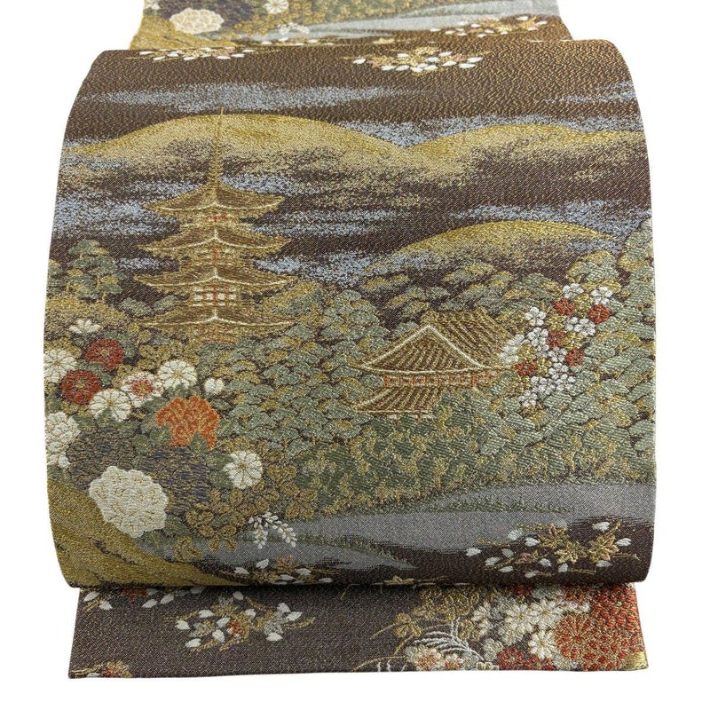 【袋帯】 茶系 茶色 秀品 A 帯丈401cm~425cm 7990-9980 美品 二万以下