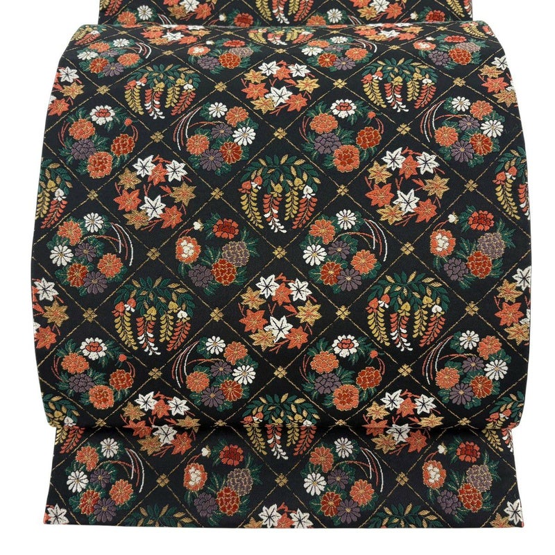 【袋帯】 黒系 黒 秀品 A 帯丈426cm~435cm 7990-9980 美品 二万以下