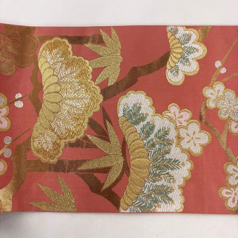 【袋帯】 赤系 サーモンピンク 秀品 B 帯丈436cm以上 4000-7980 二万以下