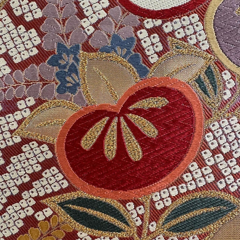おめでたい席に相応しい意匠の袋帯でございます。 格式高いお席にもお使いいただけますので、お見逃しのないようお願いいたします。 締め跡がございます。 中無地にシワがございます。 リユース品としては目立った染み傷なく、状態の良いお品でございます。 ※なお、厳しく商品の状態確認を行っておりますが、記載の汚れ以外にも見落とし箇所がある可能性がある旨ご了承いただけますと幸いです。 沢山の商品の中からご覧いただき誠にありがとうございます。