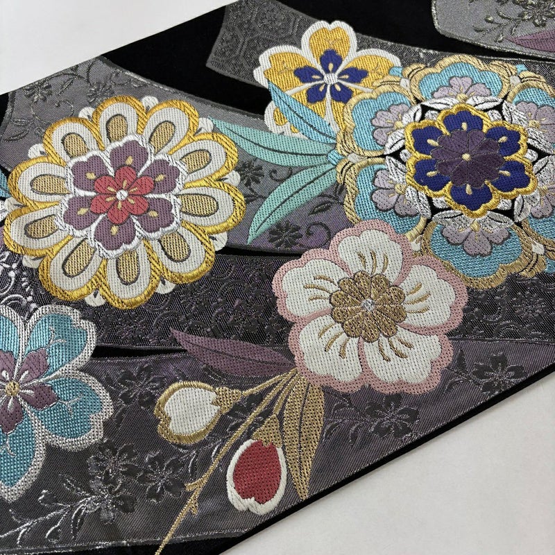 【袋帯】 黒系 黒 秀品 A 帯丈436cm以上 7990-9980 美品 二万以下