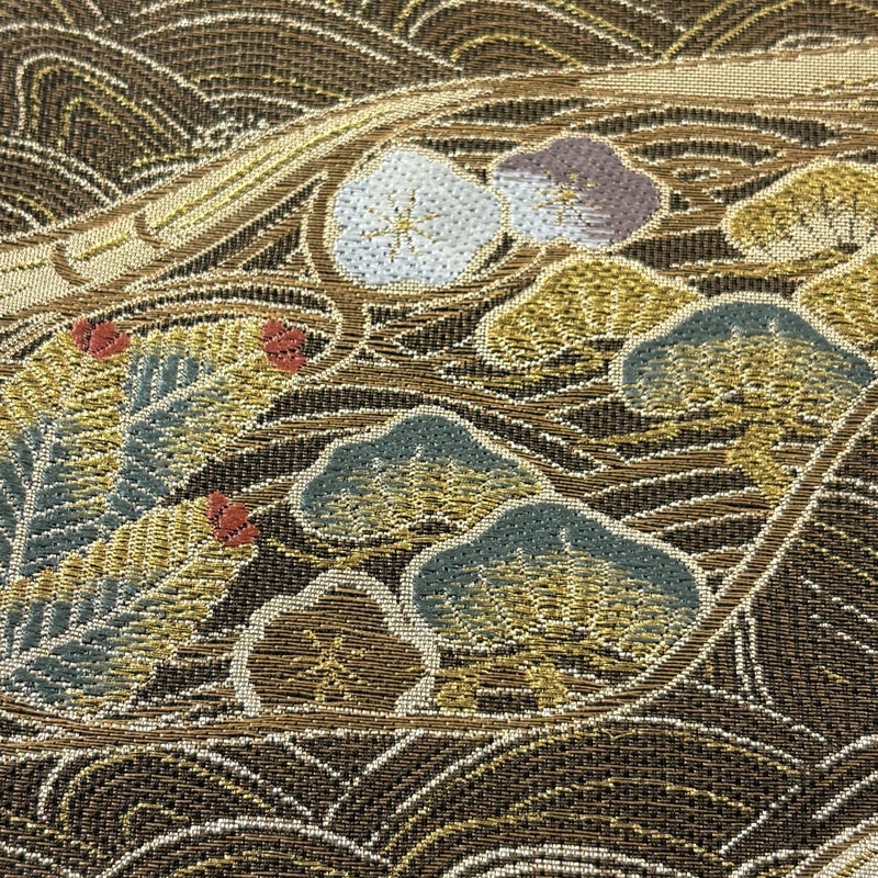 おめでたい席に相応しい意匠の袋帯でございます。 格式高いお席にもお使いいただけますので、お見逃しのないようお願いいたします。 締め跡がございます。 お太鼓垂先間帯縁部分に小さい糸つれがございます。 リユース品としては目立った染み傷なく、状態の良いお品でございます。 ※なお、厳しく商品の状態確認を行っておりますが、記載の汚れ以外にも見落とし箇所がある可能性がある旨ご了承いただけますと幸いです。 沢山の商品の中からご覧いただき誠にありがとうございます。