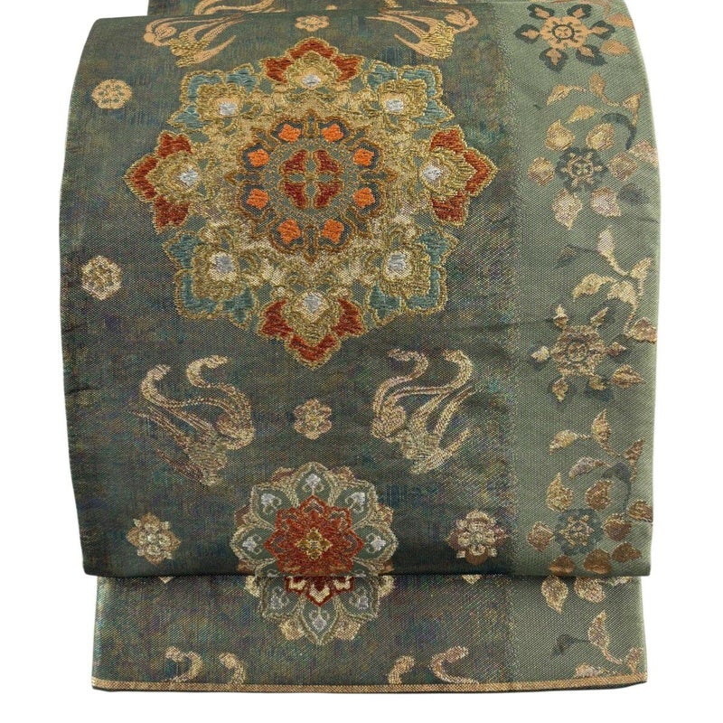 【袋帯】 緑系 緑 秀品 A 帯丈401cm~425cm 7990-9980 美品 二万以下