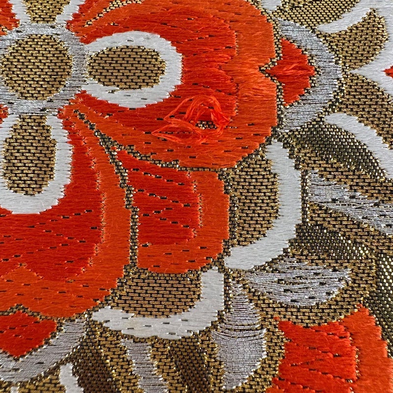 株式会社渡文の帯でございます。 織り上がるまでに多数の工程を必要としており、 高度に研ぎ澄まされた伝統の技術によって織り出された珠玉の一品となっております。 おめでたい席に相応しい意匠の袋帯でございます。 格式高いお席にもお使いいただけますので、お見逃しのないようお願いいたします。 垂先とお太鼓とお太鼓垂先間に唐織の糸ゆるみがございます。 リユース品としては良い状態で、まだまだご活用頂けると思われます。 ※なお、厳しく商品の状態確認を行っておりますが、記載の汚れ以外にも見落とし箇所がある可能性がある旨ご了承いただけますと幸いです。 沢山の商品の中からご覧いただき誠にありがとうございます。 【PR2】