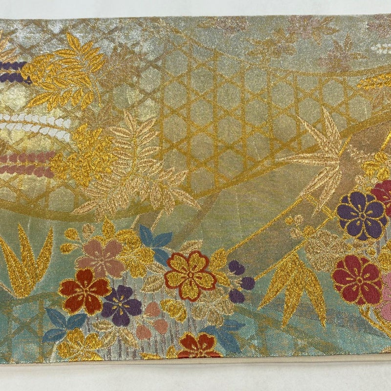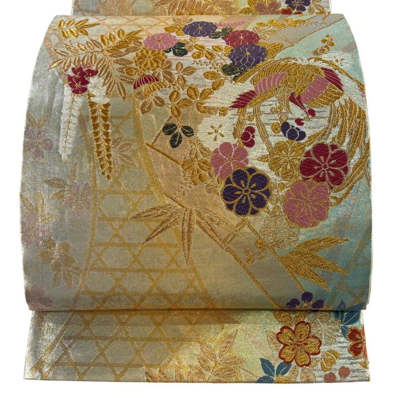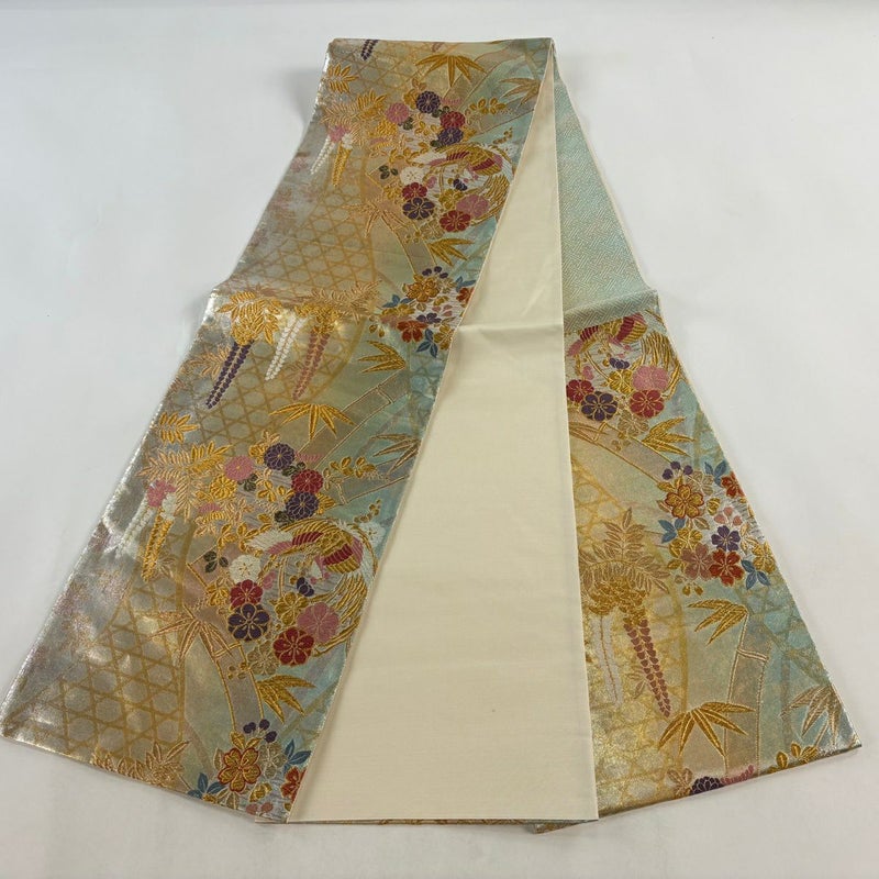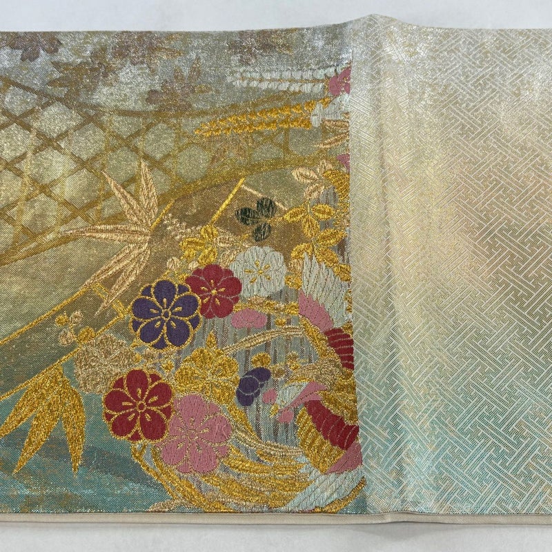 【着物ランク】秀品 【素材】正絹 【帯丈】約422cm 【帯幅】約30.5cm 【帯仕立て】仕立て上がり 【状態ランク】ランクA 【帯着用シーン】フォーマル(留袖・振袖・訪問着)