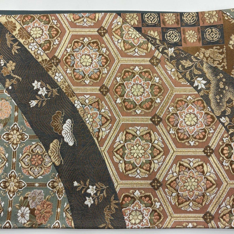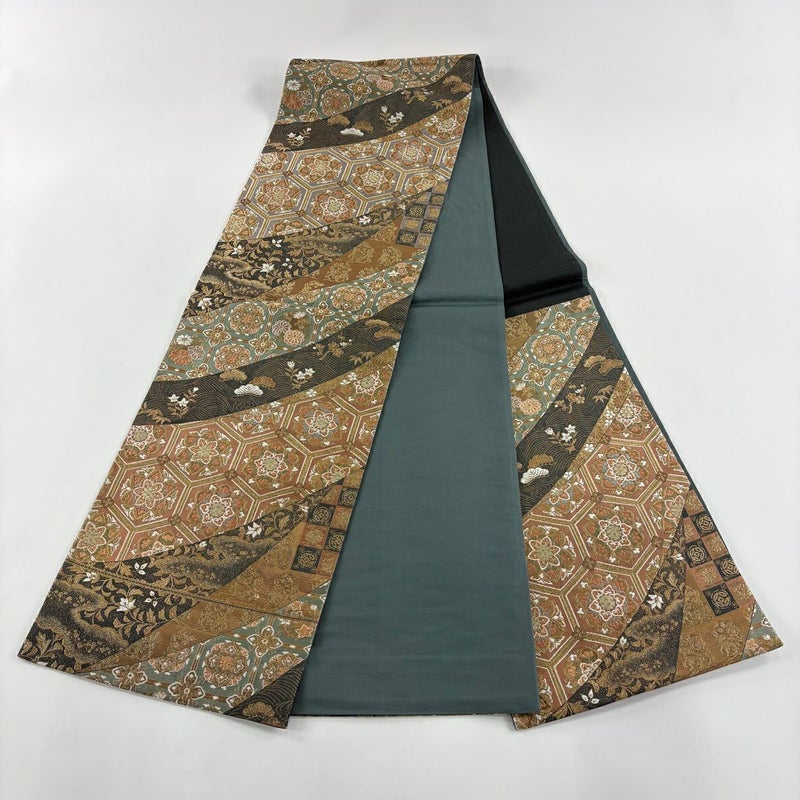 【袋帯】 緑系 深緑 秀品 A 帯丈436cm以上 7990-9980 美品 二万以下