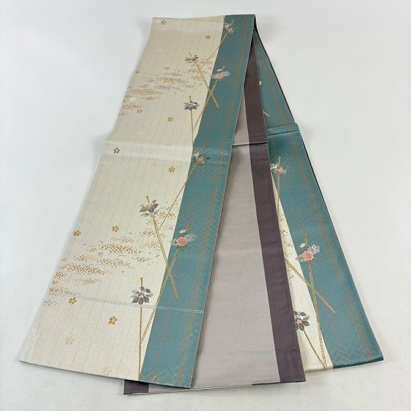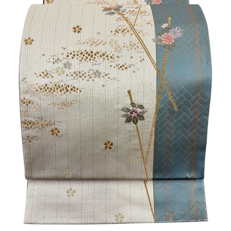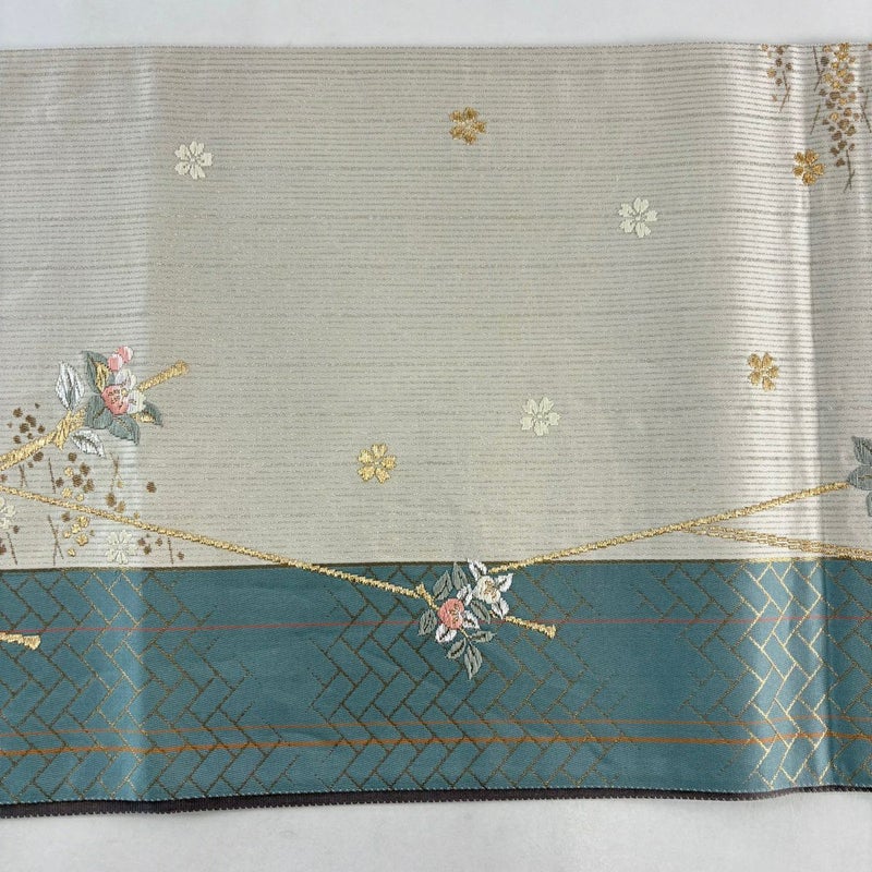 【袋帯】 白系 ベージュ 秀品 A 帯丈426cm~435cm 7990-9980 美品 二万以下