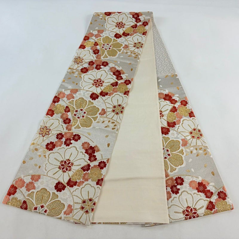 【袋帯】 白系 ベージュ 秀品 A 帯丈436cm以上 7990-9980 美品 二万以下
