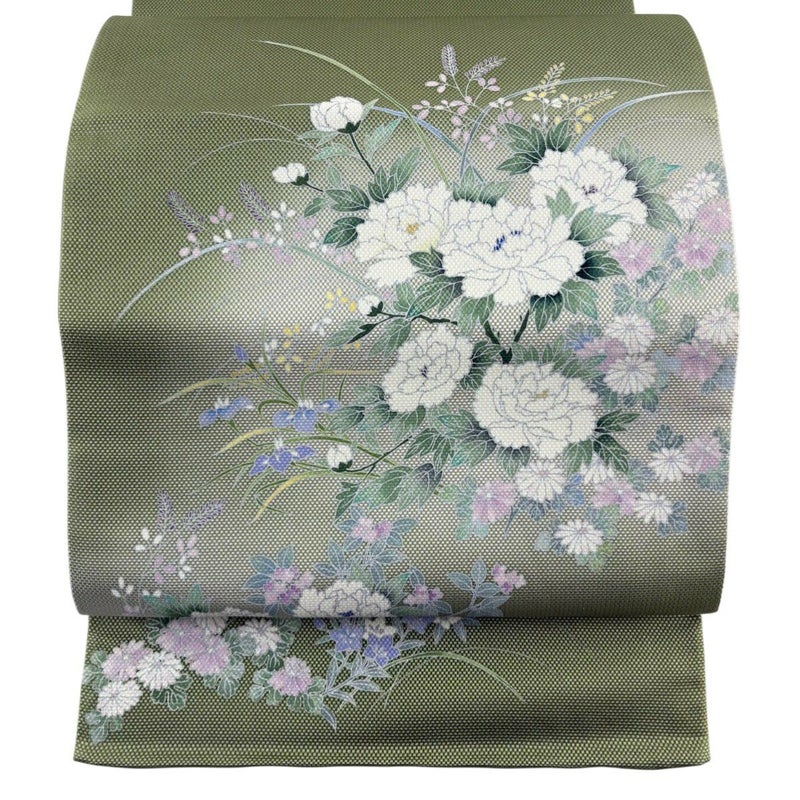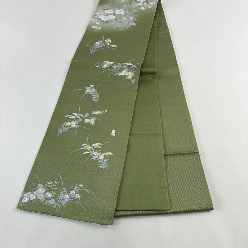 【袋帯】 緑系 よもぎ色 秀品 A 帯丈436cm以上 7990-9980 美品 二万以下