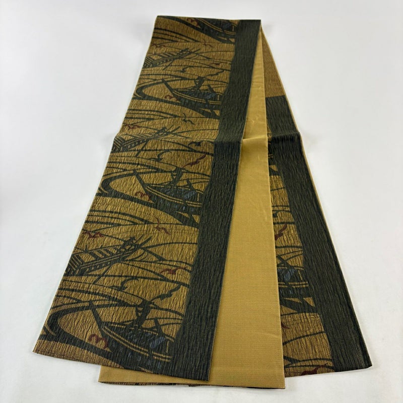 【袋帯】 茶系 茶緑色 秀品 B 帯丈401cm~425cm 4000-7980 二万以下