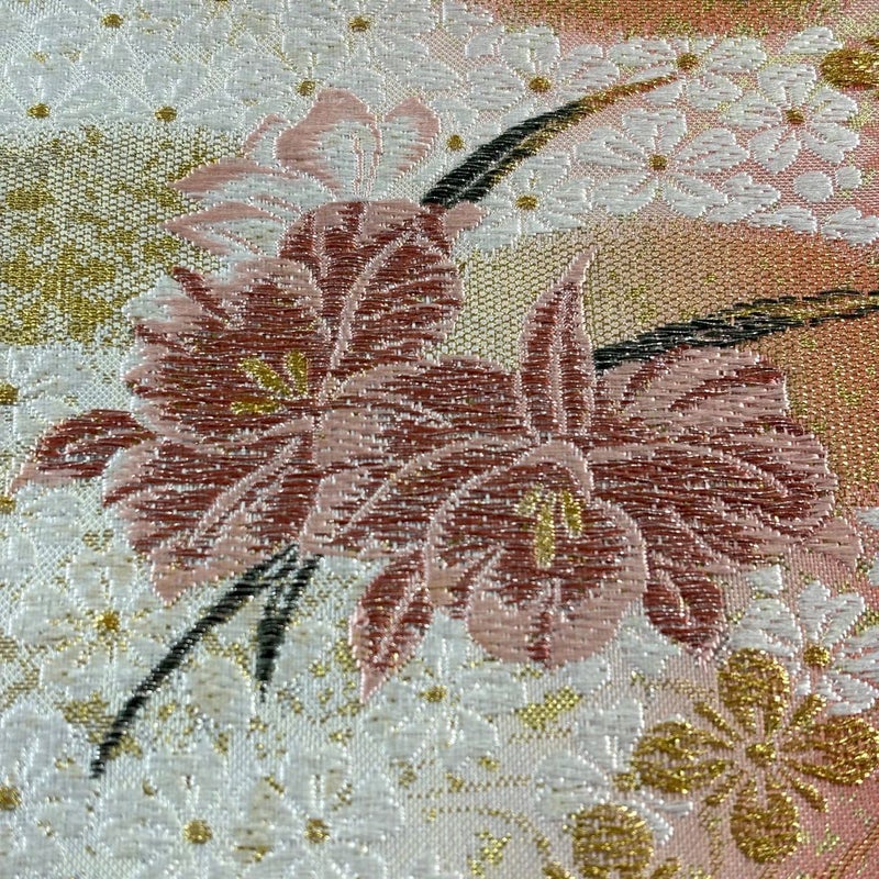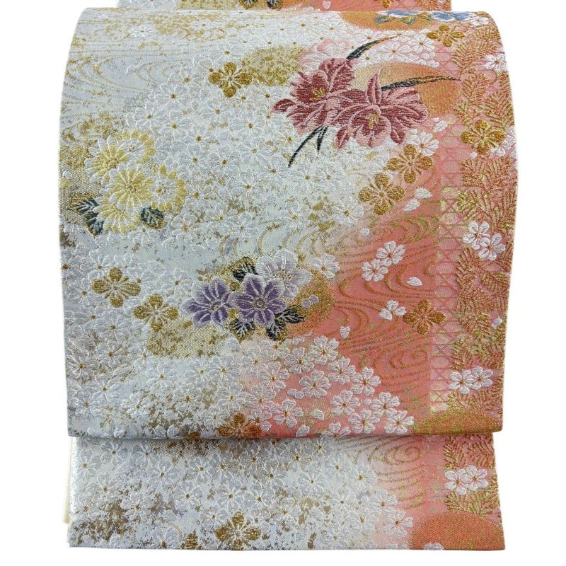 【袋帯】 赤系 薄ピンク 秀品 A 帯丈436cm以上 7990-9980 美品 二万以下