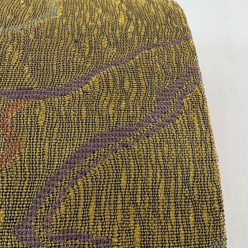 セミフォーマルでお使いいただける袋帯でございます。 見る人に重たい印象を感じさせない女性ならではの、気品豊かな一品です。 締め跡がございます。 前柄にシミ、垂先に仕立ての歪みがございます。 裏地の垂先に生地のヨレがございます。 リユース品としては良い状態で、まだまだご活用頂けると思われます。 ※なお、厳しく商品の状態確認を行っておりますが、記載の汚れ以外にも見落とし箇所がある可能性がある旨ご了承いただけますと幸いです。 沢山の商品の中からご覧いただき誠にありがとうございます。 【PR2】