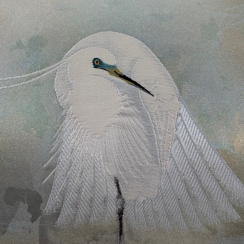 セミフォーマルでお使いいただける袋帯でございます。 見る人に重たい印象を感じさせない女性ならではの、気品豊かな一品です。 締め跡がございます。 お太鼓付近とお太鼓垂先間に生地のヨレ、手先前柄間の所々にシミがございます。 リユース品としては良い状態で、まだまだご活用頂けると思われます。 ※なお、厳しく商品の状態確認を行っておりますが、記載の汚れ以外にも見落とし箇所がある可能性がある旨ご了承いただけますと幸いです。 沢山の商品の中からご覧いただき誠にありがとうございます。 【PR2】