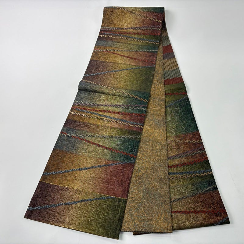 【袋帯】 茶系 茶緑色 秀品 B 帯丈436cm以上 4000-7980 二万以下