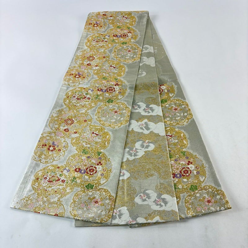 【袋帯】 金・銀系 銀色 秀品 A 帯丈436cm以上 7990-9980 美品 二万以下