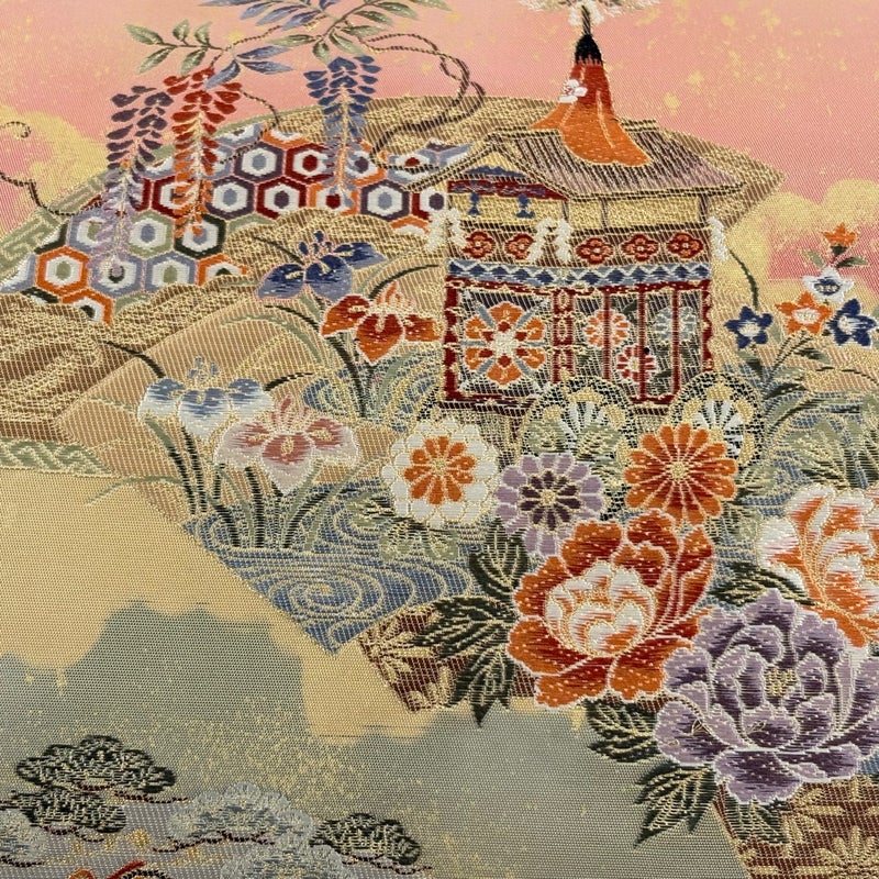 【着物ランク】秀品 【素材】正絹 【帯丈】約436cm 【帯幅】約30.5cm 【帯仕立て】仕立て上がり 【状態ランク】ランクB 【帯着用シーン】フォーマル(留袖・振袖・訪問着)