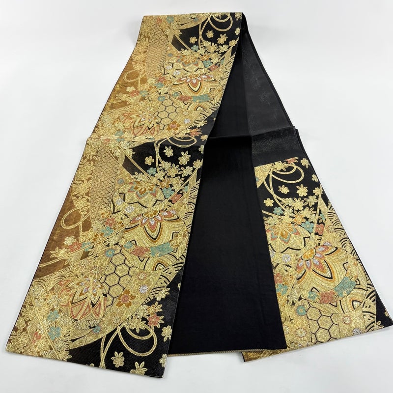 【袋帯】 黒系 黒 秀品 A 帯丈436cm以上 7990-9980 美品 二万以下