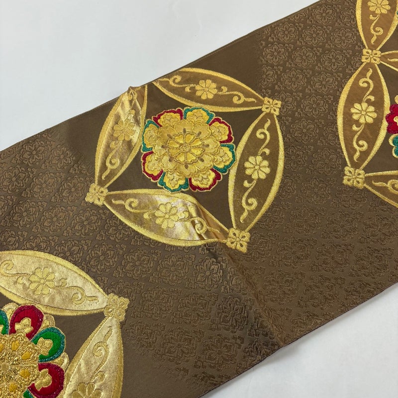 【袋帯】 茶系 茶色 秀品 A 帯丈436cm以上 7990-9980 美品 二万以下