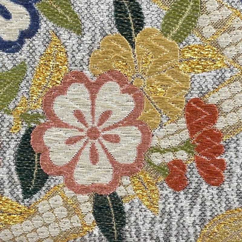 京都西陣、染と織の名門「じゅらく」謹製による作品でございます。 おめでたい席に相応しい意匠の袋帯でございます。 格式高いお席にもお使いいただけますので、お見逃しのないようお願いいたします。 締め跡がございます。 お太鼓所々と前柄お太鼓間にほつれ、表地所々に糸ゆるみがございます。 リユース品としては良い状態で、まだまだご活用頂けると思われます。 ※なお、厳しく商品の状態確認を行っておりますが、記載の汚れ以外にも見落とし箇所がある可能性がある旨ご了承いただけますと幸いです。 沢山の商品の中からご覧いただき誠にありがとうございます。 【PR2】