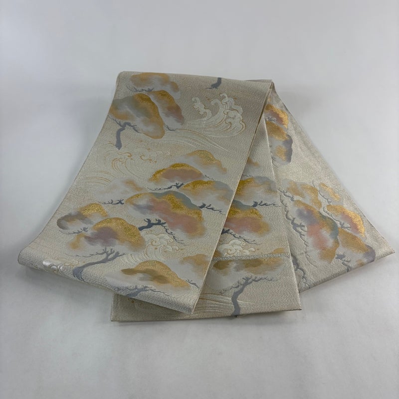 【袋帯】 白系 ベージュ 秀品 A 帯丈426cm~435cm 7990-9980 美品 二万以下