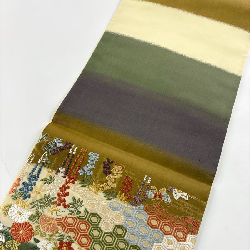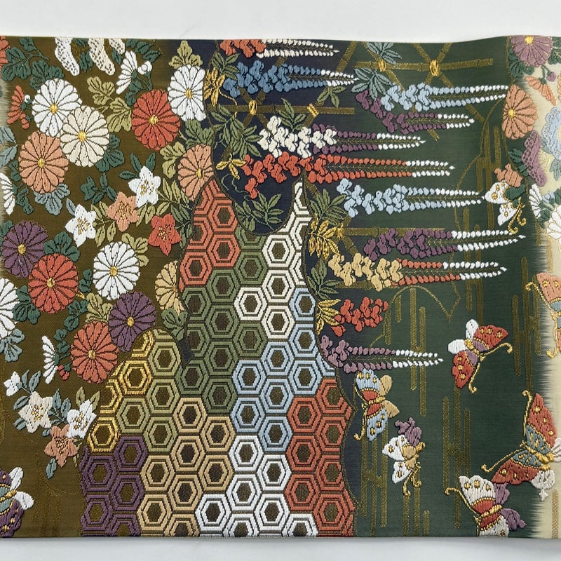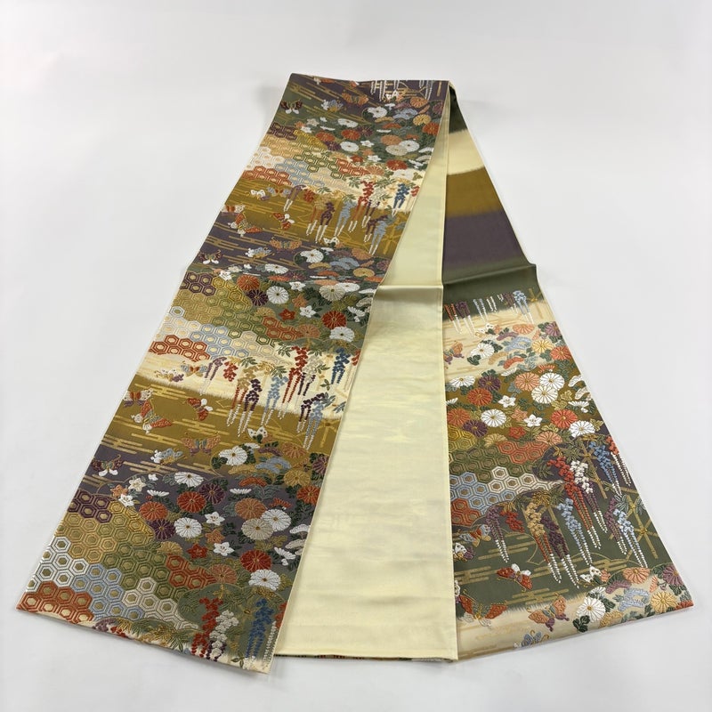 【袋帯】 灰色系 灰緑 秀品 A 帯丈426cm~435cm 7990-9980 美品 二万以下