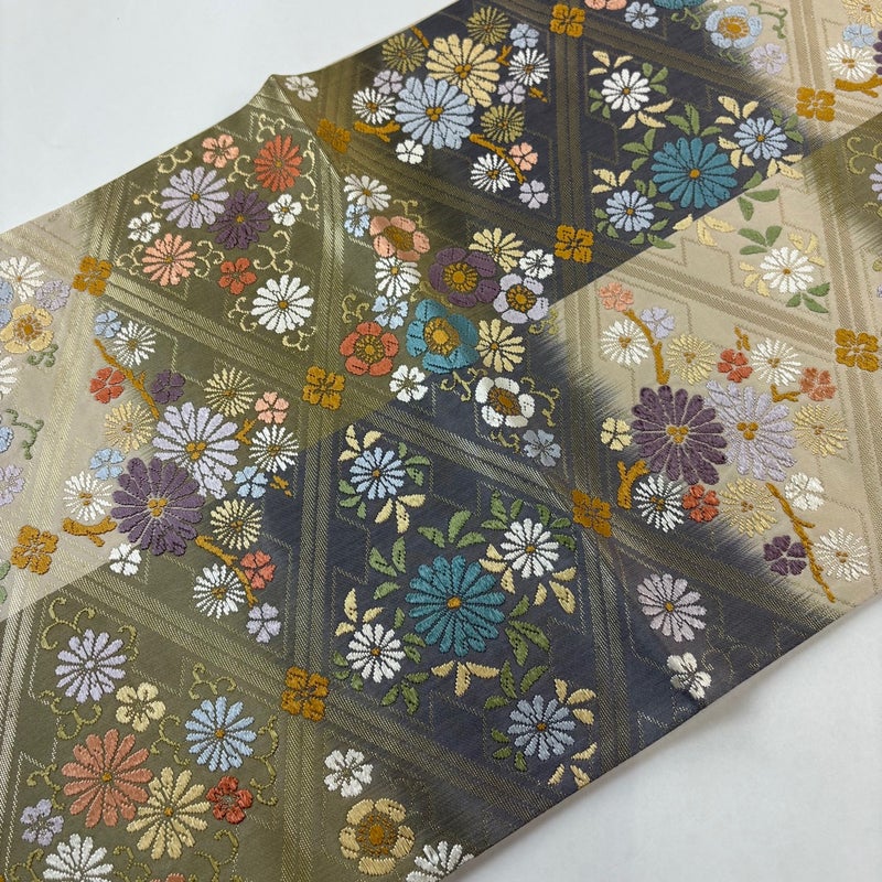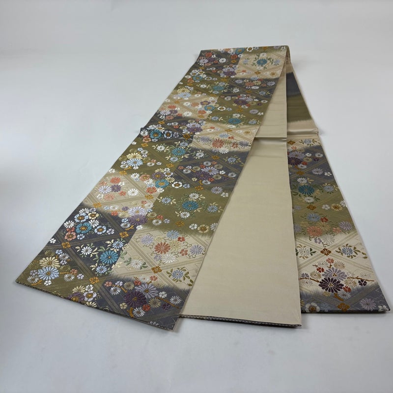 【袋帯】 灰色系 灰緑 秀品 A 帯丈436cm以上 7990-9980 美品 二万以下