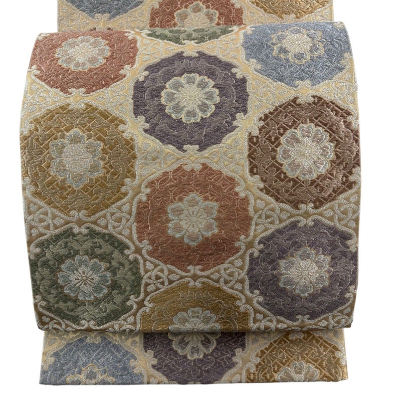 【袋帯】 白系 ベージュ 秀品 A 帯丈436cm以上 7990-9980 美品 二万以下