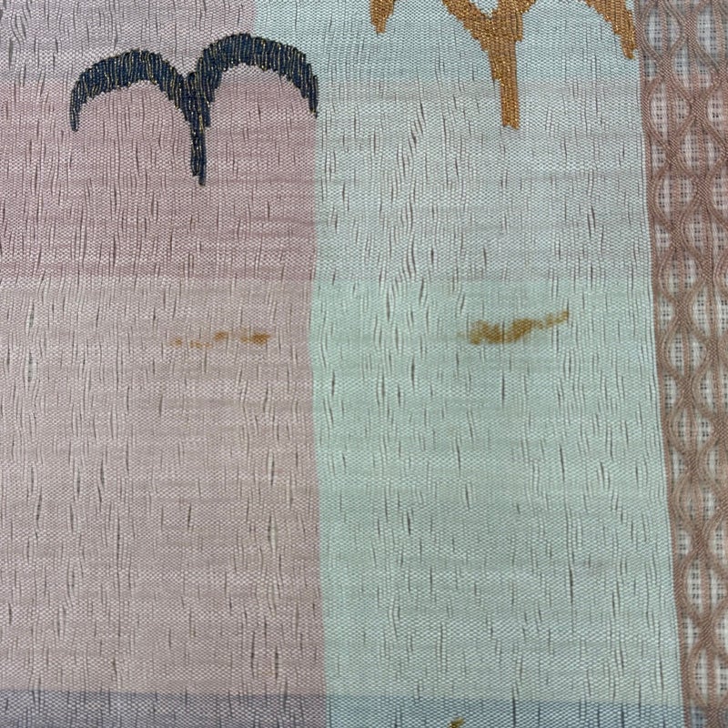セミフォーマルでお使いいただける袋帯でございます。 見る人に重たい印象を感じさせない女性ならではの、気品豊かな一品です。 締め跡がございます。 お太鼓と前柄所々にシミ、お太鼓にシワ、前柄お太鼓間に糸ゆるみがございます。 裏地に糸ゆるみがございます。 ご購入の際はその点ご留意ください。 ※なお、厳しく商品の状態確認を行っておりますが、記載の汚れ以外にも見落とし箇所がある可能性がある旨ご了承いただけますと幸いです。 沢山の商品の中からご覧いただき誠にありがとうございます。 【PR2】