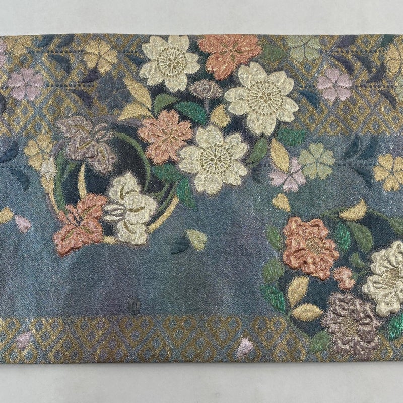 【袋帯】 灰色系 青灰色 秀品 A 帯丈436cm以上 7990-9980 美品 二万以下