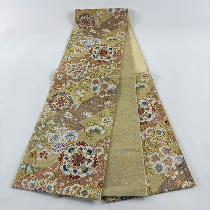 【着物ランク】秀品 【素材】正絹 【帯丈】約432cm 【帯幅】約31cm 【帯仕立て】仕立て上がり 【状態ランク】ランクA 【帯着用シーン】フォーマル(留袖・振袖・訪問着)