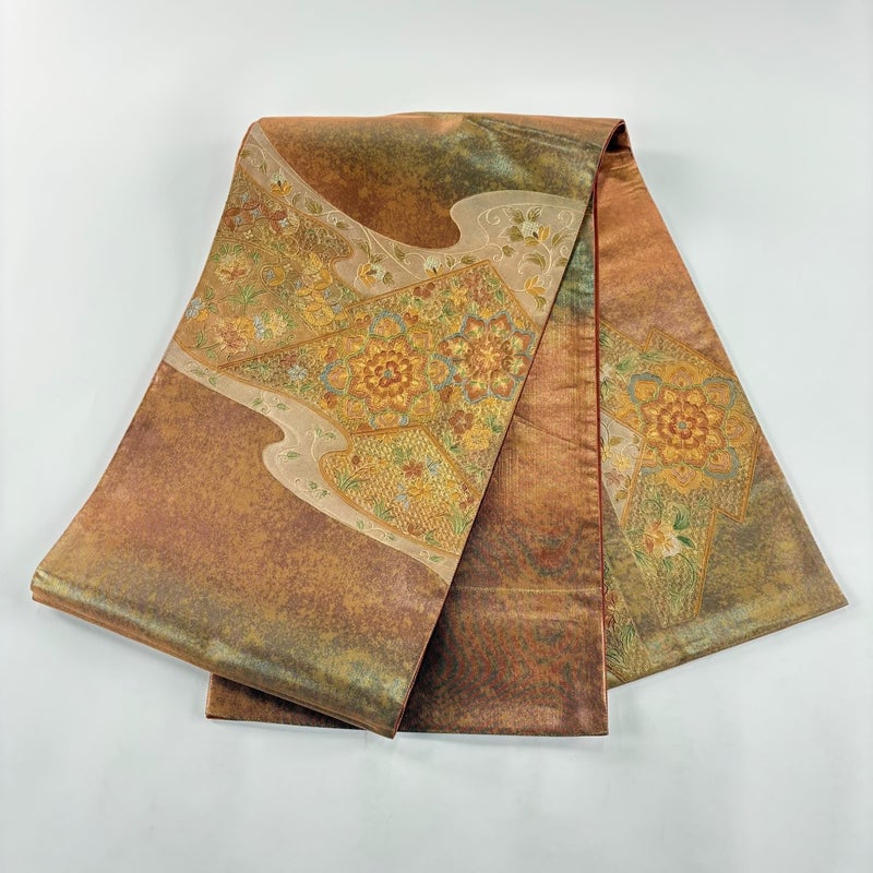 【着物ランク】秀品 【素材】正絹 【帯丈】約430cm 【帯幅】約30.5cm 【帯仕立て】仕立て上がり 【状態ランク】ランクA 【帯着用シーン】セミフォーマル(色無地・付下げ)
