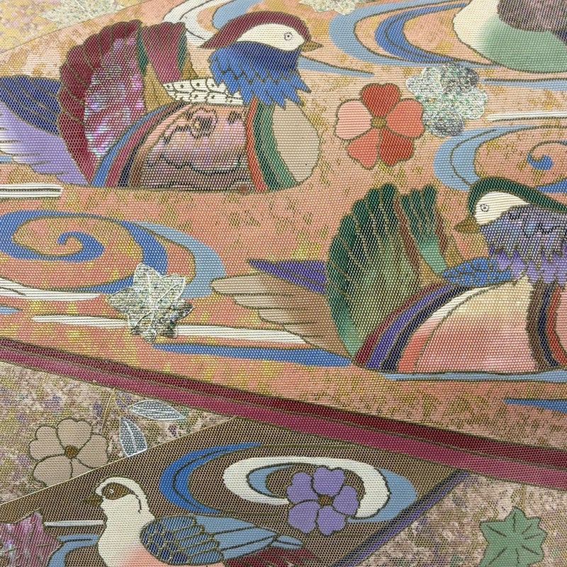 おめでたい席に相応しい意匠の袋帯でございます。 格式高いお席にもお使いいただけますので、お見逃しのないようお願いいたします。 締め跡がございます。 表地所々に金銀彩の変色がございます。 リユース品としては良い状態で、まだまだご活用頂けると思われます。 ※なお、厳しく商品の状態確認を行っておりますが、記載の汚れ以外にも見落とし箇所がある可能性がある旨ご了承いただけますと幸いです。 沢山の商品の中からご覧いただき誠にありがとうございます。 【PR2】