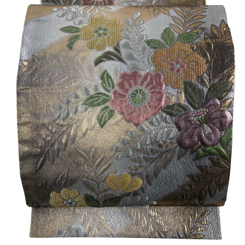 【袋帯】 灰色系 灰色 秀品 A 帯丈426cm~435cm 7990-9980 美品 二万以下