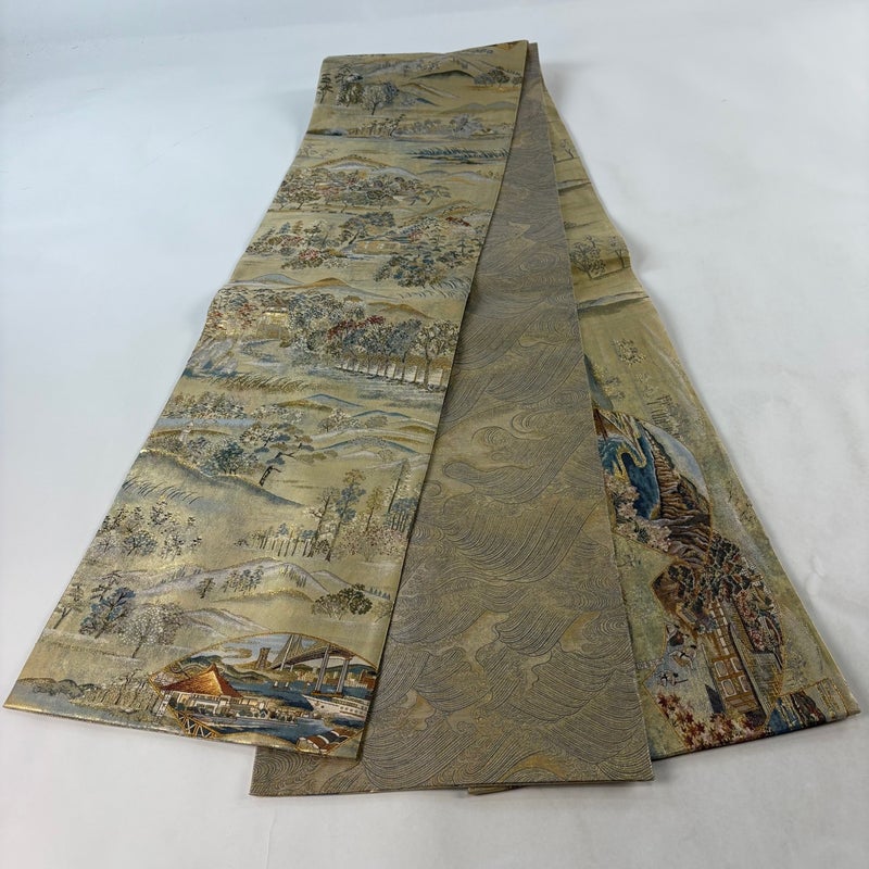 【袋帯】 白系 ベージュ 秀品 A 帯丈436cm以上 7990-9980 美品 二万以下