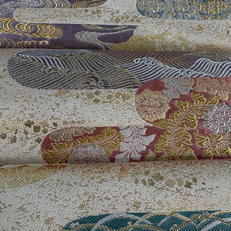 【袋帯】 白系 ベージュ 秀品 A 帯丈426cm~435cm 7990-9980 美品 二万以下