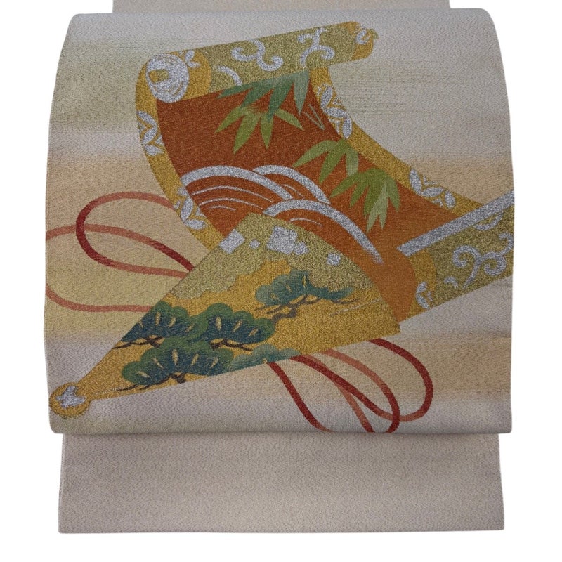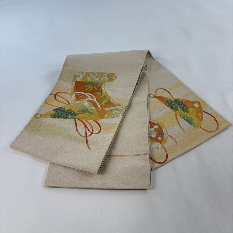 【袋帯】 白系 ベージュ 秀品 A 帯丈426cm~435cm 7990-9980 美品 二万以下