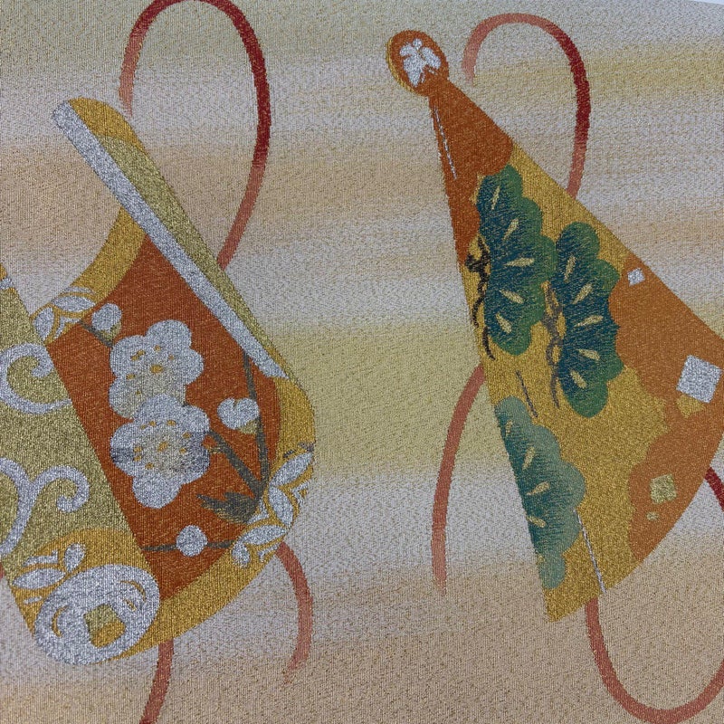 軍配マークと三本線が特徴の「川島織物」謹製の作品です。 セミフォーマルでお使いいただける袋帯でございます。 見る人に重たい印象を感じさせない女性ならではの、気品豊かな一品です。 リユース品としては目立った染み傷なく、状態の良いお品でございます。 ※なお、厳しく商品の状態確認を行っておりますが、記載の汚れ以外にも見落とし箇所がある可能性がある旨ご了承いただけますと幸いです。 沢山の商品の中からご覧いただき誠にありがとうございます。 【PR2】