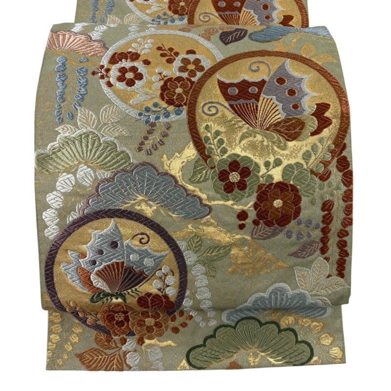 【袋帯】 灰色系 灰緑 秀品 A 帯丈426cm~435cm 7990-9980 美品 二万以下