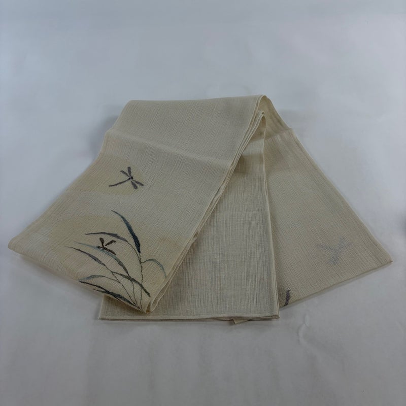 夏帯でございます。 セミフォーマルでお使いいただける袋帯でございます。 見る人に重たい印象を感じさせない女性ならではの、気品豊かな一品です。 帯芯が入っておりません。 締め跡がございます。 お太鼓と手先前柄間に生地のヨレ、垂先に仕立てのゆがみがございます。 裏地に生地のヨレがございます。 リユース品としては良い状態で、まだまだご活用頂けると思われます。 ※なお、厳しく商品の状態確認を行っておりますが、記載の汚れ以外にも見落とし箇所がある可能性がある旨ご了承いただけますと幸いです。 沢山の商品の中からご覧いただき誠にありがとうございます。 【PR2】
