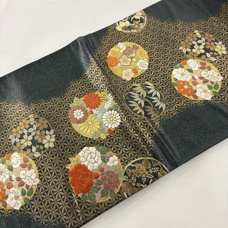 【袋帯】 緑系 深緑 名品 A 帯丈426cm~435cm 9990-29990 美品 二万以下