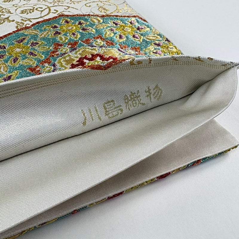 軍配マークと三本線が特徴の「川島織物」謹製の作品です。 セミフォーマルでお使いいただける袋帯でございます。 見る人に重たい印象を感じさせない女性ならではの、気品豊かな一品です。 締め跡がございます。 リユース品としては良い状態で、まだまだご活用頂けると思われます。 ※なお、厳しく商品の状態確認を行っておりますが、記載の汚れ以外にも見落とし箇所がある可能性がある旨ご了承いただけますと幸いです。 沢山の商品の中からご覧いただき誠にありがとうございます。 ※保管によるにおい移りがございます。 【PR2】