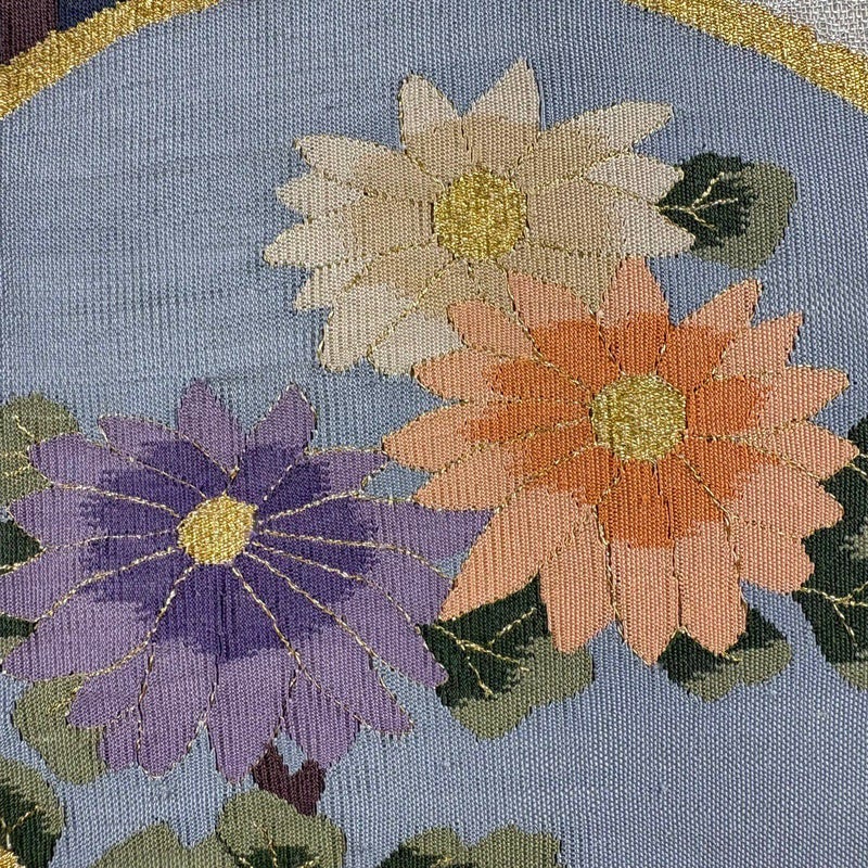 夏帯でございます。 セミフォーマルでお使いいただける袋帯でございます。 見る人に重たい印象を感じさせない女性ならではの、気品豊かな一品です。 締め跡がございます。 お太鼓垂先間と手先前柄間に小さなシミがございます。 リユース品としては目立った染み傷なく、状態の良いお品でございます。 ※なお、厳しく商品の状態確認を行っておりますが、記載の汚れ以外にも見落とし箇所がある可能性がある旨ご了承いただけますと幸いです。 沢山の商品の中からご覧いただき誠にありがとうございます。 【PR2】