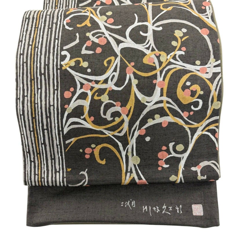 【着物ランク】名品 【素材】正絹 【帯丈】約466cm 【帯幅】約31cm 【帯仕立て】未仕立て 【状態ランク】ランクA 【作家名】川村久太郎 【帯着用シーン】普段使いの洒落帯(紬・小紋)