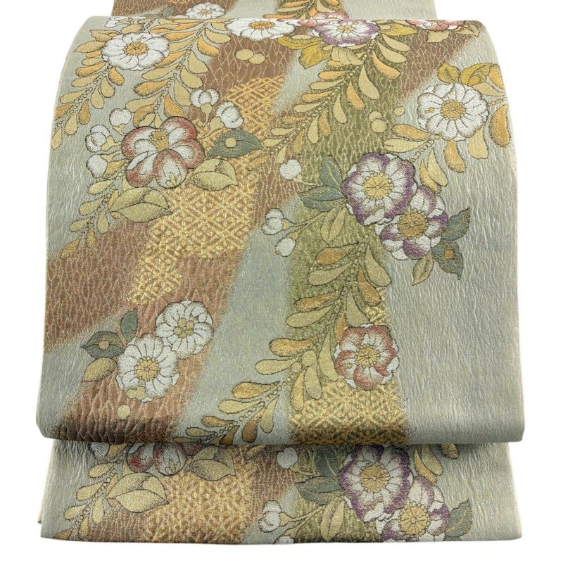 【着物ランク】名品 【素材】正絹 【帯丈】約436cm 【帯幅】約30.5cm 【帯仕立て】仕立て上がり 【状態ランク】ランクA 【帯着用シーン】セミフォーマル(色無地・付下げ)