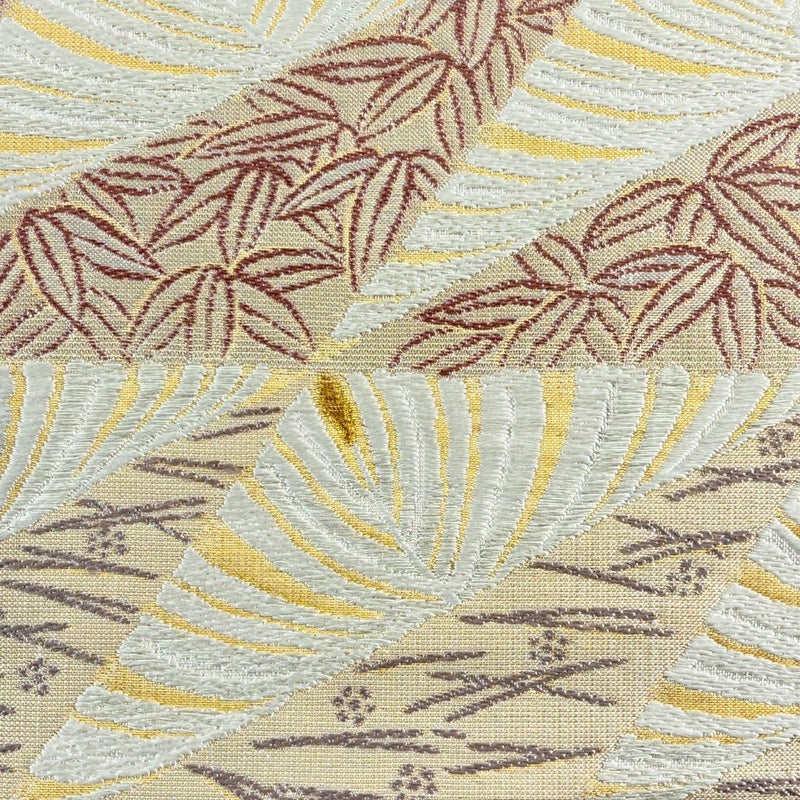 セミフォーマルでお使いいただける袋帯でございます。 見る人に重たい印象を感じさせない女性ならではの、気品豊かな一品です。 締め跡がございます。 裏地に生地のヨレがございます。 リユース品としては目立った染み傷なく、状態の良いお品でございます。 ※なお、厳しく商品の状態確認を行っておりますが、記載の汚れ以外にも見落とし箇所がある可能性がある旨ご了承いただけますと幸いです。 沢山の商品の中からご覧いただき誠にありがとうございます。 【PR2】