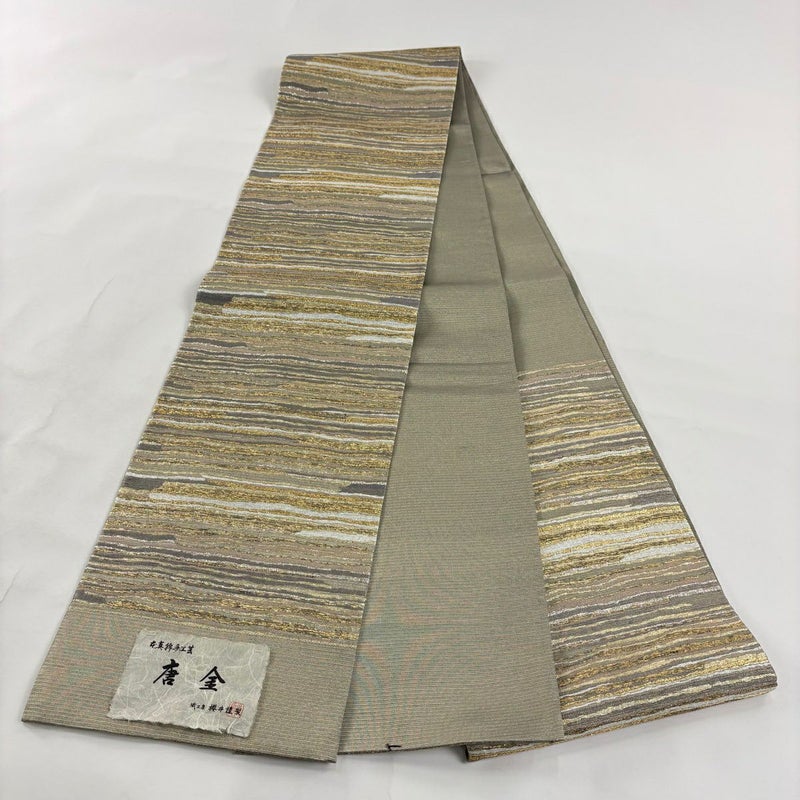 【袋帯】 灰色系 灰緑 名品 A 帯丈436cm以上 9990-29990 美品 二万以下