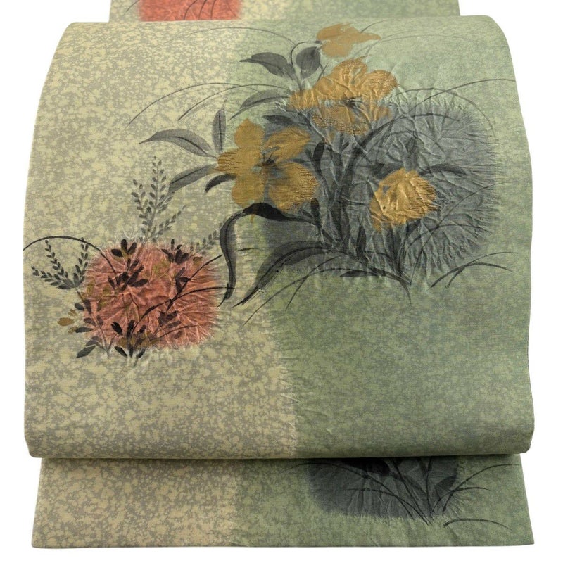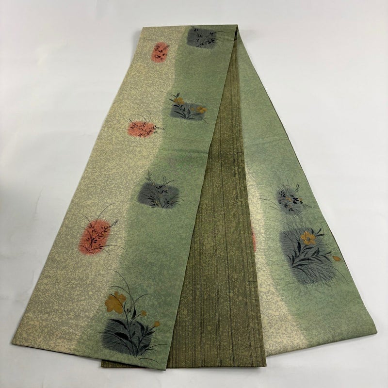 【袋帯】 灰色系 灰緑 秀品 A 帯丈426cm~435cm 7990-9980 美品 二万以下